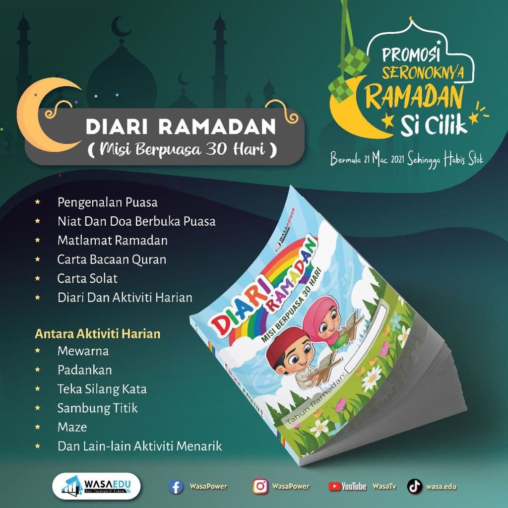 Planner Nukilan Jiwa RM 600 Select options. Buku Aktiviti Ramadan yang menyeronokkan dan penuh dengan maklumat penting mengenai bulan Ramadan bulan puasa ini merangkumi pelbagai aktiviti untuk menyokong pembelajaran kanak-kanak pada bulan mulia dalam kalendar Islam kalendar Hijrah ini. Aktiviti mewarna sangat sinonim dengan kanak-kanak terutamanya untuk kanak-kanak di peringkat prasekolah tadika dan sekolah rendah tahap 1 KSSR.